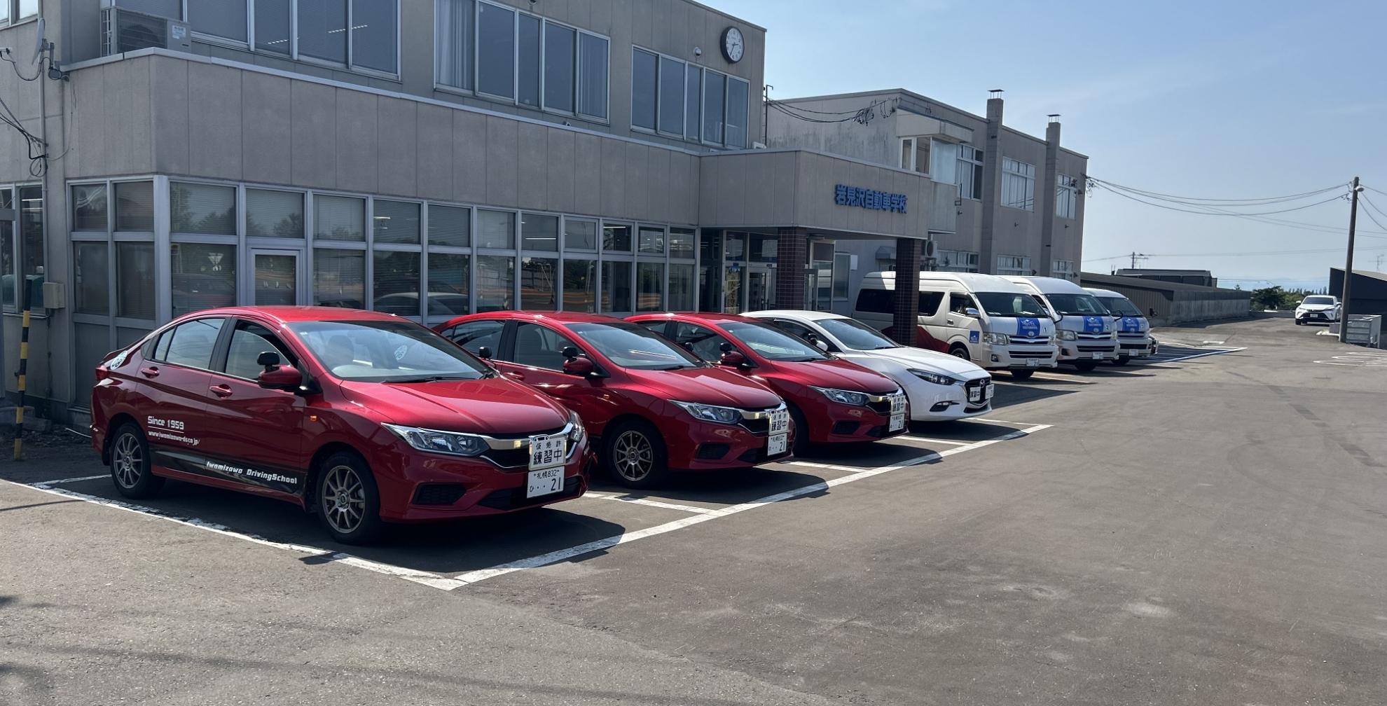 岩見沢自動車学校の校舎です。学科教習からシミュレーター応急救護室の教室や食堂を完備しています。